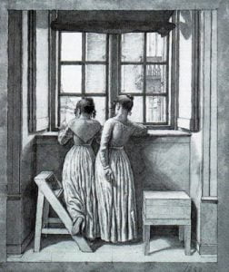 -Continuamos con el mundo del DIBUJO, que es superinteresante. -Pincha en el siguiente enlace para acceder a la web: milartienda.com -OBRA de CHRISTOFFER ECKERSBERG (1783-Copenhague, 1853). Pintor clasicista danés. -«Dos niñas en la ventana». 1852.
